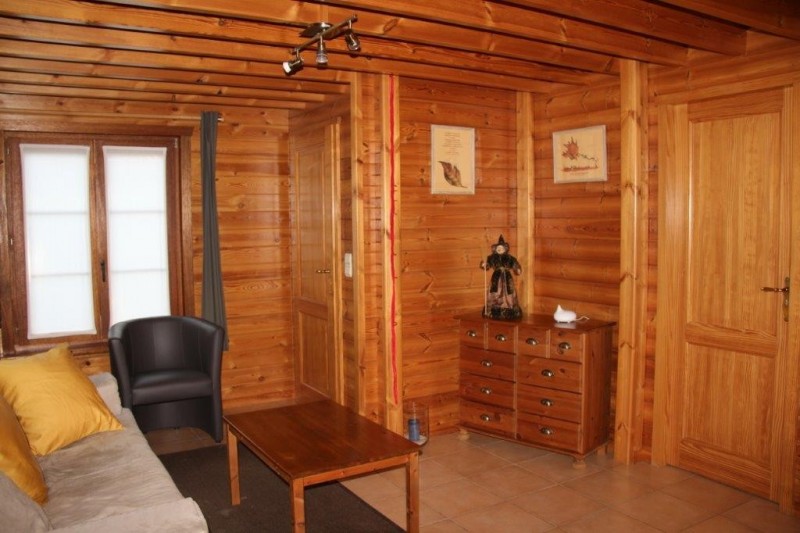 Binnen is het huisje volledig bemeubeld en bestaat beneden uit een vrij ruime living (8m/4m), een eerste slaapkamer, een ingerichte keuken met alle nodige toestellen en huisraad, een technische ruimte/bergplaats, een kleine inkom, toilet en een badkamer met bad/douche, lavabo, wasmachine.