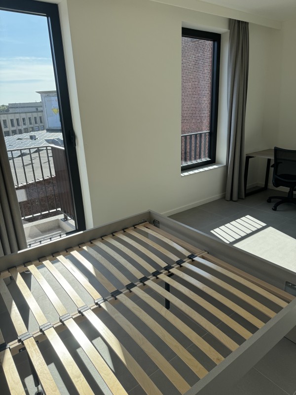 Deze kamer maakt deel uit van een nieuwe studentenresidentie met 25 kamers gelegen in het hart van Kortrijk dicht bij het station, de Grote Markt en de campussen van de Howest (incl. DAE) en de UGent.