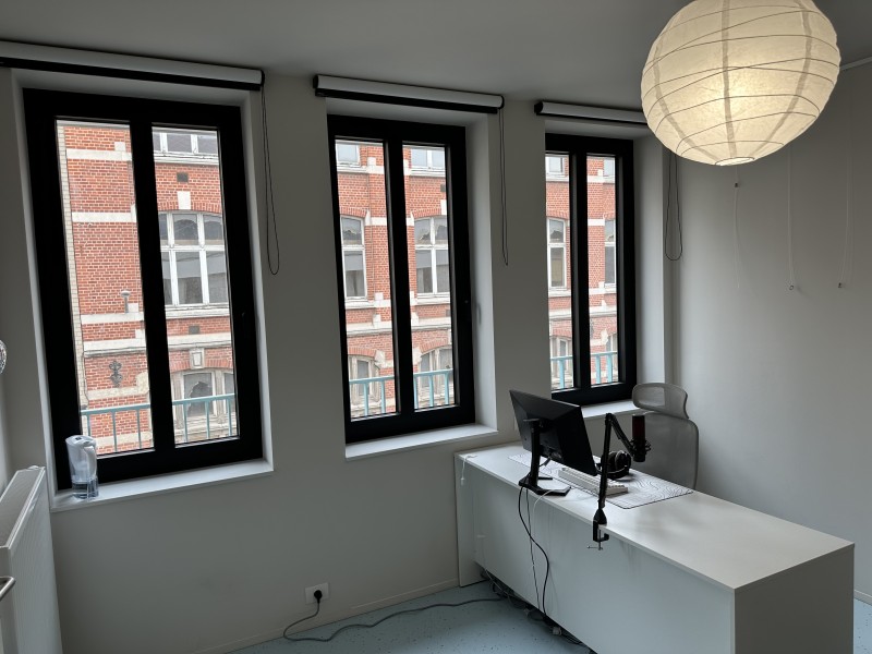 De kamer heeft drie grote ramen met veel lichtinval. Er is individuele internetaansluiting (abonnement en router zelf te voorzien in functie van cybersecurity.